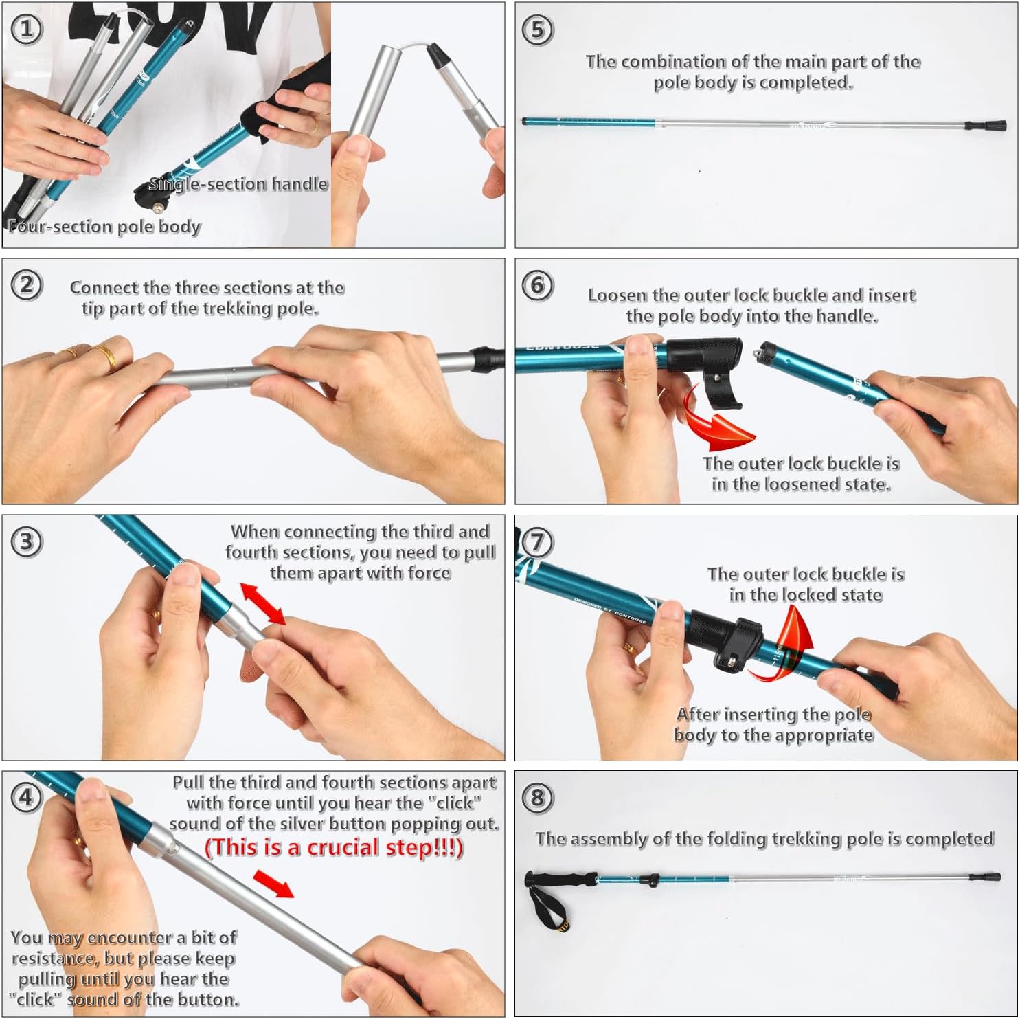 These hiking poles are engineered for durability and performance, ensuring they can withstand the toughest terrains and weather conditions. The lightweight design provides you with added support and stability, reducing strain on your joints and muscles during long treks.